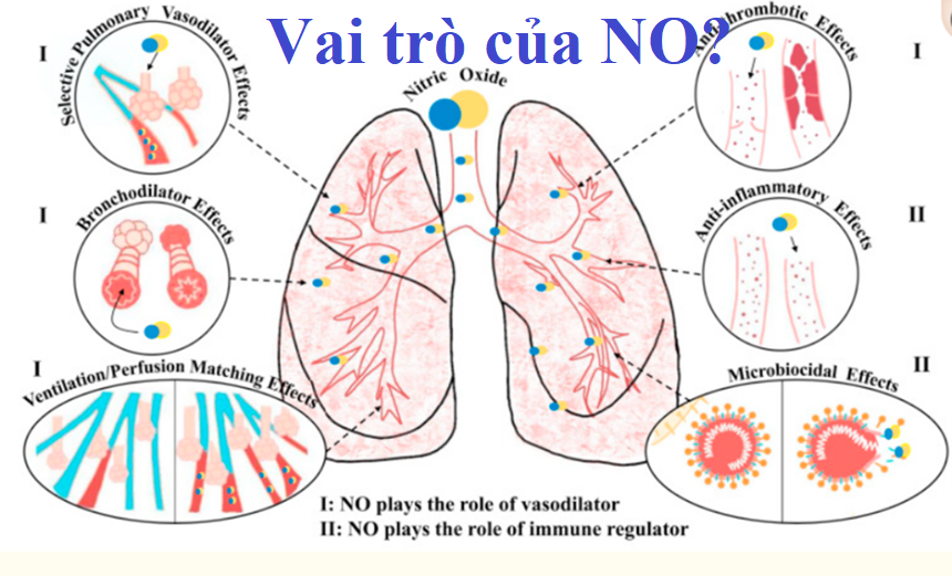 NO vừa có vai trò giãn mạch, vừa có khả năng điều hòa miễn dịch. Nghiên cứu cho thấy NO có thể giúp giãn đường thở và tăng độ bão hòa oxy trong máu (SPO2). Hơn nữa với vai trò là chất điều hòa miễn dịch, NO có khả năng chống viêm, ngăn ngừa quá trình viêm nhiễm và là một chất kháng vi-rút, tiêu diệt và ức chế sự nhân lên của virus SARS-CoV-1 / SARS-CoV-2.