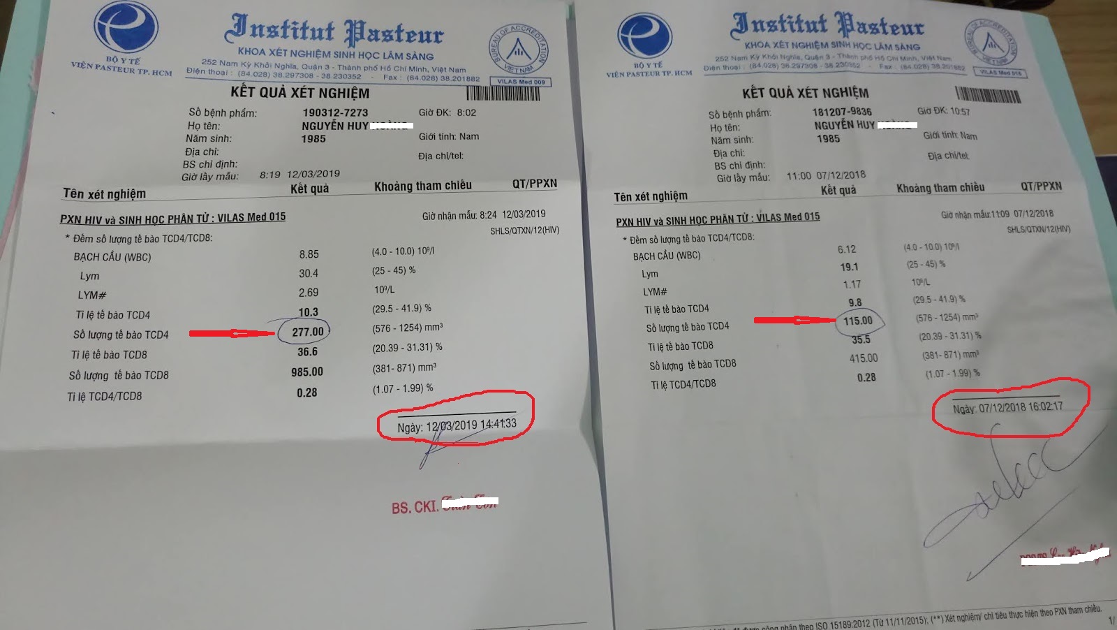 Trên đây là kết quả của một ca bệnh có số lượng CD4 thấp nhưng đã tăng lên nhanh chóng chỉ trong thời gian ngắn.