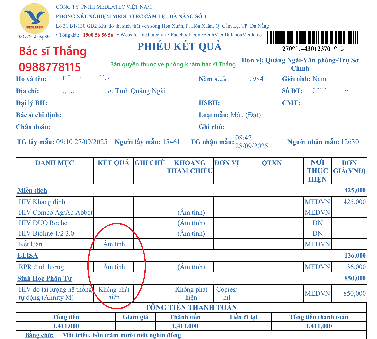 Thực ra, sau khi điều trị xong liệu trình PEP trong 30 ngày, anh này có làm test nhanh vài lần. Kết quả cho âm tính, nhưng vẫn lo lắng và muốn kiểm tra lại nhiều lần cho chắc. Ngày 28/09/2025 vừa qua, có kết quả xét nghiệm khẳng định HIV chiến lược 3, PCR HIV đều âm tính. Tức là, với mốc thời gian 9 tháng, các kết quả xét nghiệm như vậy nói lên anh hoàn toàn không bị nhiễm HIV. Quá trình điều trị PEP của anh này hồi đầu năm đã thành công tốt đẹp.