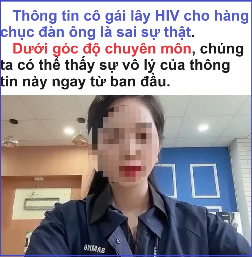 Thời gian gần đây các trang mạng xã hội đang lan truyền chóng mặt thông tin sai sự thật. Đó là 1 cô gái là nhân viên công ty Samsung Thái Nguyên lây HIV cho hàng chục người đàn ông. Điều đó liệu có thể xảy ra? Hãy cùng phân tích dưới góc độ chuyên môn?