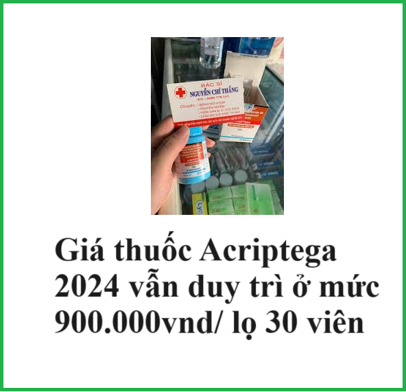 Nói tóm lại, giá Acriptega 2024 vẫn duy trì ở mức 900.000vnd/ lọ 30 viên. Địa chỉ mua hàng thuốc Acriptega tốt nhất ở Nhà thuốc Hồng Nhung.