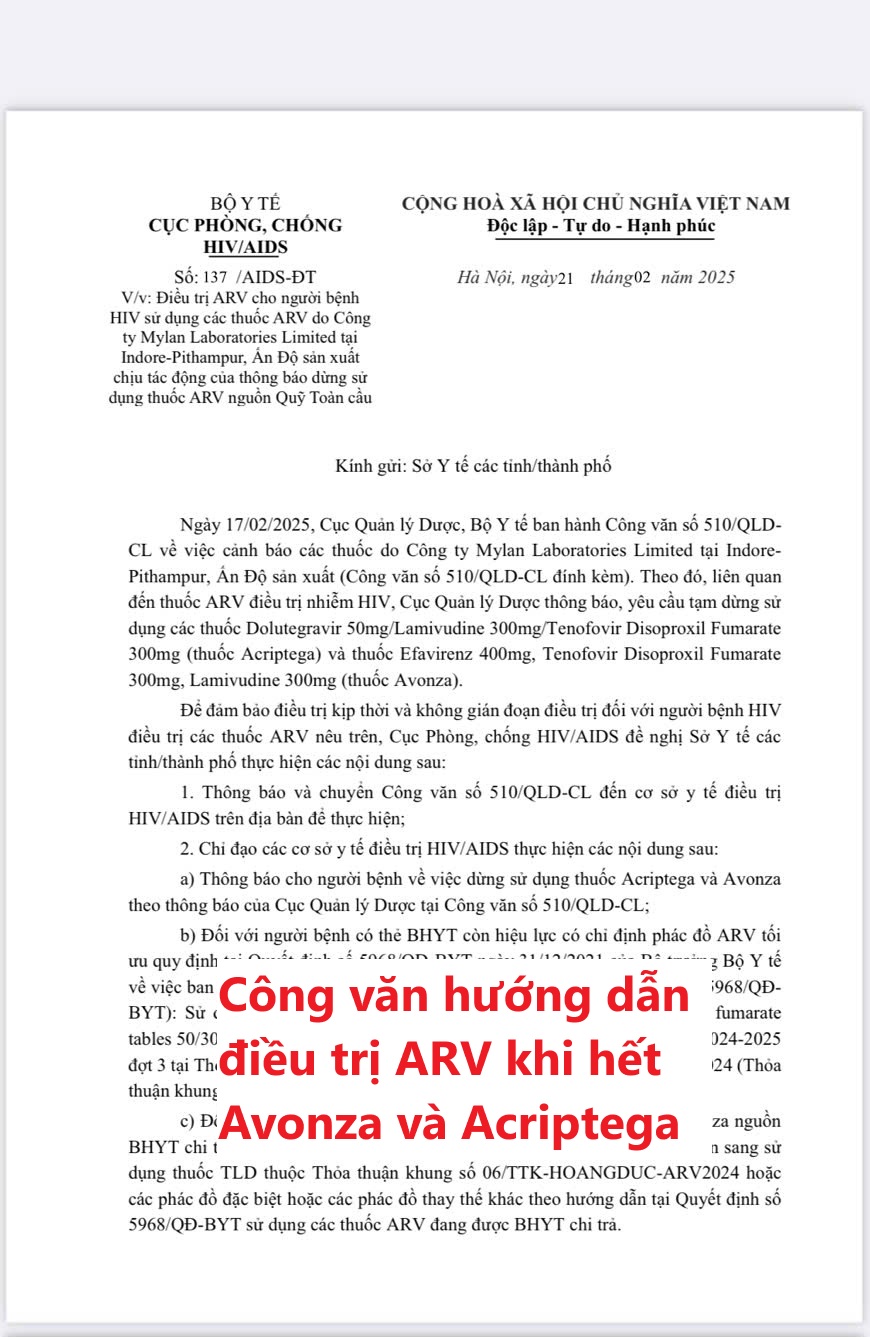 Như vậy, tính theo mốc thời gian công văn số 510 xuất hiện, thì từ ngày 17/02/2025 Avonza và Acriptega không còn được lưu hành tại Việt Nam. Cho nên, có thể nói 2 loại thuốc đặc trị HIV này đã biến mất.