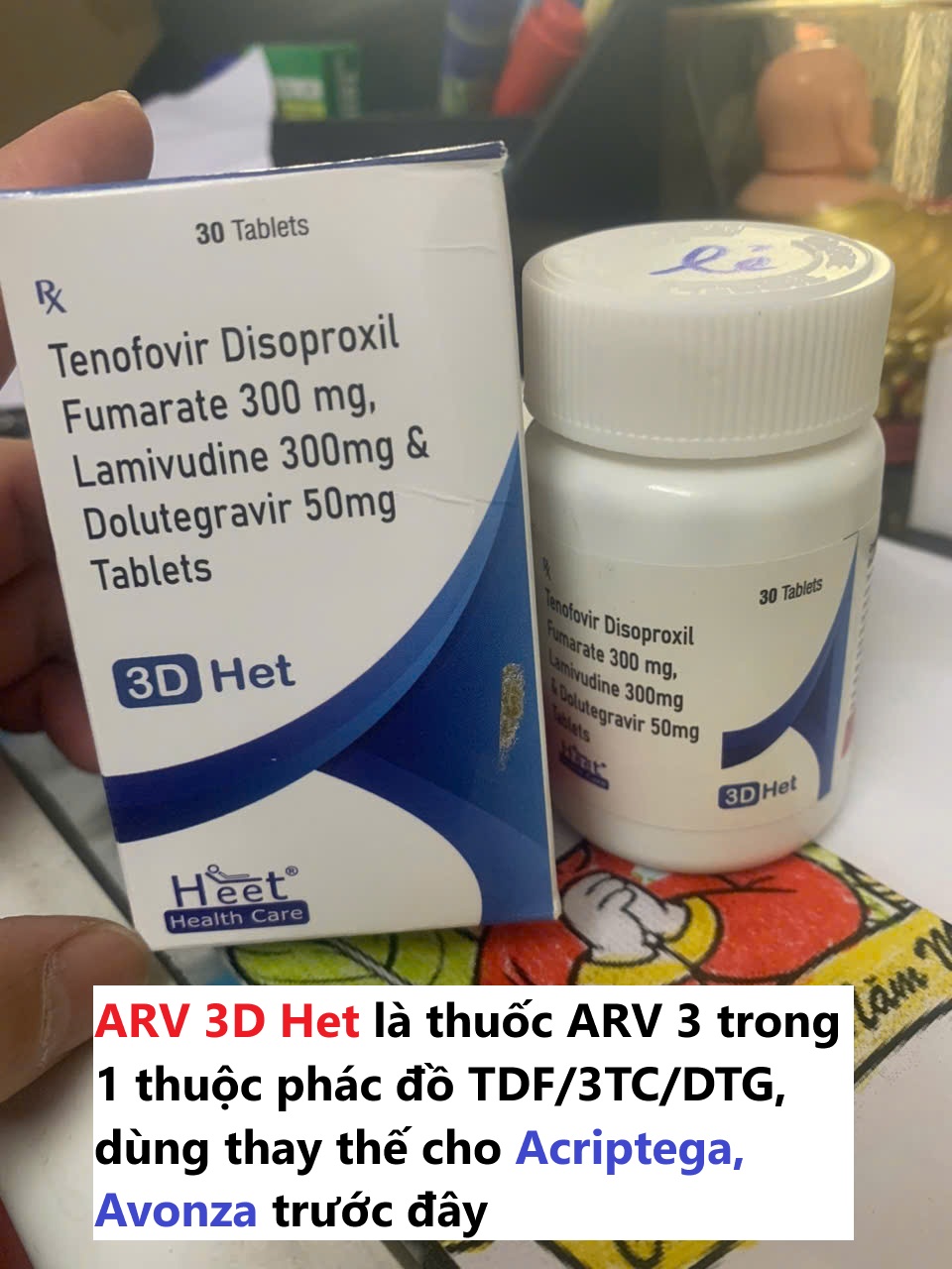 ARV 3D Het là thuốc ARV 3 trong 1 do công ty Heet Health Care của Ấn Độ sản xuất. Nó là thuốc đặc trị dùng trong điều trị hoặc dự phòng phơi nhiễm HIV. Đây đang là sự lựa chọn hàng đầu để thay thế cho những thuốc Acriptega, Avonza không còn được lưu hành tại Việt Nam.