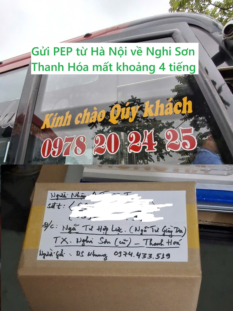 Thuốc PEP được Nhà thuốc Hồng Nhung gửi từ Hà Nội về Nghi Sơn Thanh Hóa mất khoảng 4 tiếng. Tính từ thời gian khách đặt hàng, ship mang tới bến xe và đến tận tay người nhận thì tổng là khoảng 6 tiếng.