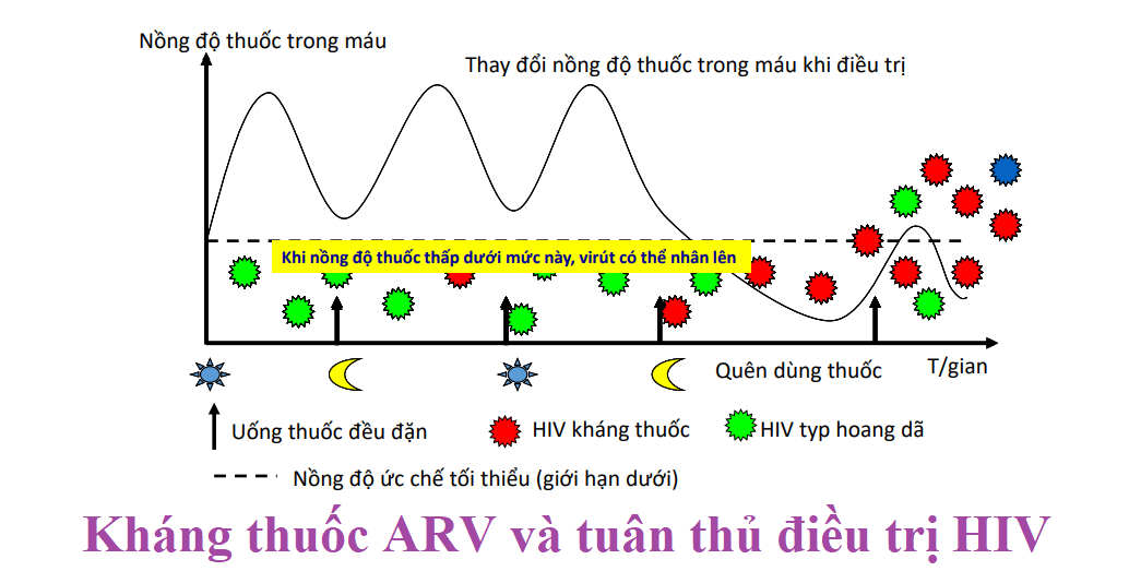 Khi duy trì uống đều đặn hàng ngày, nồng độ tối thiểu của thuốc ARV sẽ được bảo đảm. Từ đó ức chế virus HIV và ngăn ngừa nguy cơ kháng thuốc. Ngược lại, nếu bỏ lửng thời gian, hoặc số lần quên uống quá nhiều, các chủng HIV hoang dại sẽ sinh đột biến chống lại ARV. Càng nhiều lần xảy ra, số đột biến kháng thuốc ARV càng tăng lên, dẫn đến thất bại điều trị ARV.