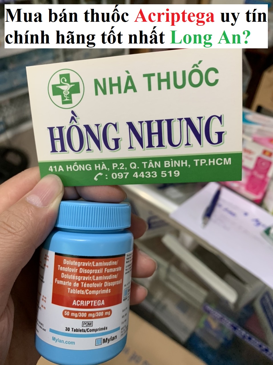 Mua bán thuốc Acriptega tốt nhất Long An liên hệ ngay với nhà thuốc Hồng Nhung. Đây là địa chỉ uy tín hàng chục năm trong lĩnh vực thuốc ARV nói chung, Acriptega nói riêng. Thuốc được cam kết chính hãng, chất lượng chuẩn 100%. Giá cả phải chăng, lại có dịch vụ tư vấn miễn phí, đẳng cấp chuyên môn cao.