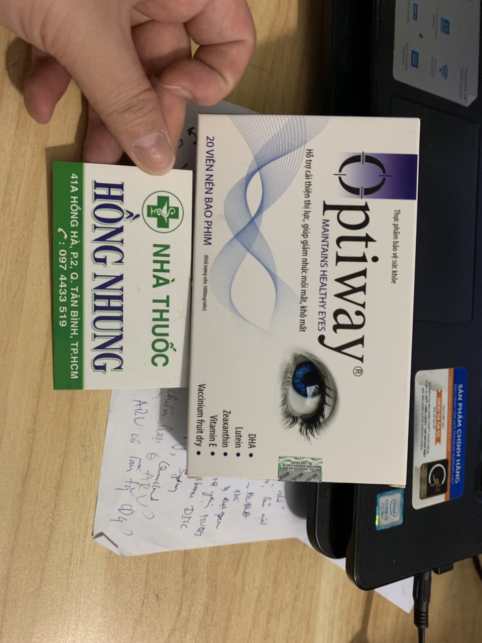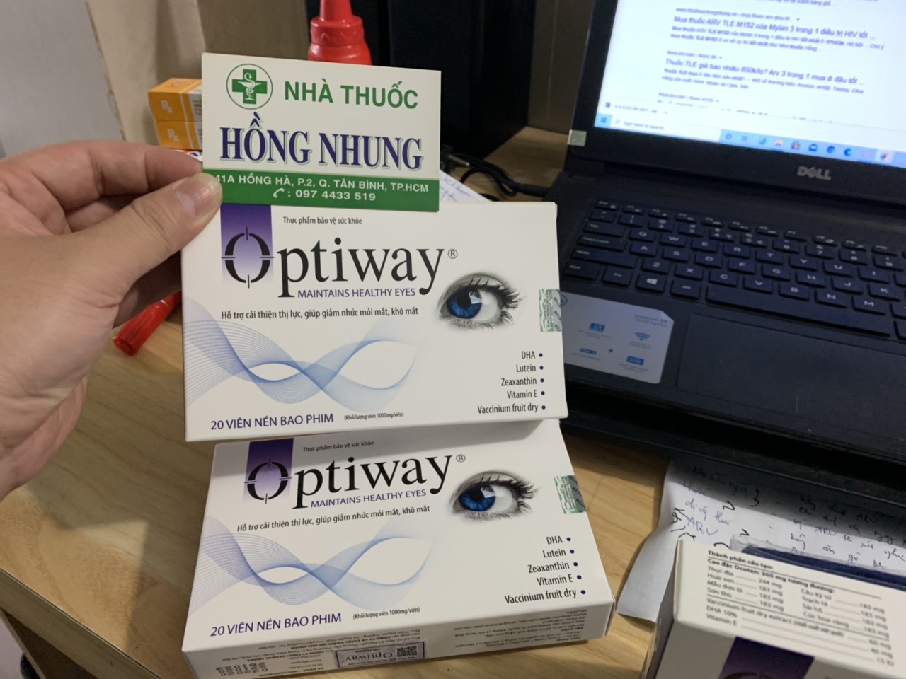 Mua viên bổ mắt Optiway giúp cải thiện thị lực, giảm nhức mỏi mắt, khô mắt, hạn chế tác hại của ánh sáng xanh do màn hình máy vi tính, điện thoại gây ra. OPTIWAY mua tốt nhất ở Nhà thuốc Hồng Nhung 41A Hồng Hà, phường 2, quận Tân Bình, TPHCM, gần sân bay quốc tế Tân Sơn Nhất.