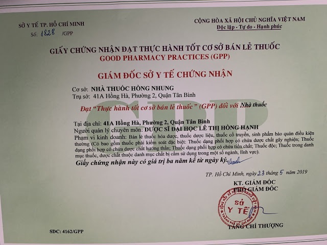 Nhà thuốc Hồng Nhung tại địa chỉ 41A Hồng Hà, Phường 2, Quận Tân Bình, Thành phố Hồ Chí Minh, gần sân bay quốc tế Tân Sơn Nhất là điểm tựa vững chắc, đáng tin cậy cho bệnh nhân không may mắc các bệnh mạn tính như viêm gan virus B, viêm gan virus C hay HIV/AIDS.