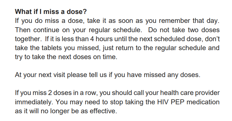 Theo bác sĩ Thắng, không phải quá hốt hoảng hay sợ hãi vì mình đã trót quên uống thuốc ARV. Các bạn thấy rằng trong phác đồ điều trị HIV hay điều trị PEP đều có sự phối hợp nhiều loại thuốc với nhau. Cho nên chuyện quên uống một lần không gây ảnh hưởng quá nhiều. Mục đích phối hợp nhiều thuốc khác nhau trong điều trị HIV có nhiều ý nghĩa. Ngoài việc giúp tiêu diệt virus HIV tốt hơn còn giúp ngăn ngừa tình trạng kháng thuốc ARV do những lần quên thuốc, uống thuốc trễ giờ xảy ra như thế này. Tất nhiên nếu quên nhiều quá thì không thể nói trước điều gì.