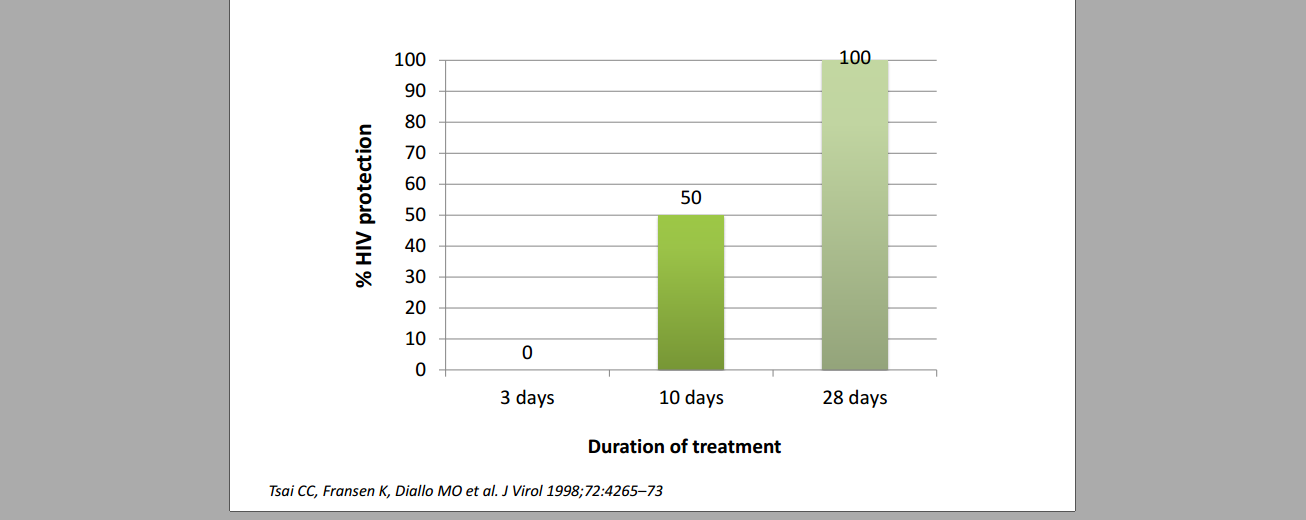 Cơ sở lớn nhất để người ta đưa ra con số 28 ngày chính là nghiên cứu trên động vật. Người ta thấy rằng nếu chỉ uống thuốc đến khoảng 14 ngày thì hiệu quả phòng chống phơi nhiễm HIV đạt 50%, đến 28 ngày thì đạt 100%.