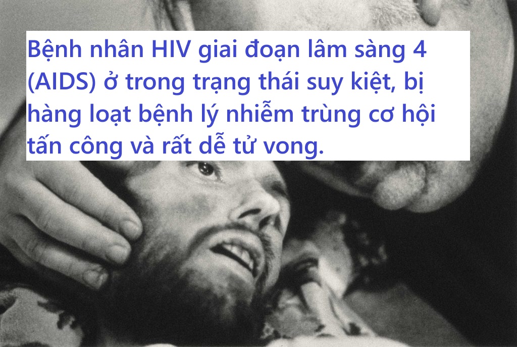 - Giai đoạn lâm sàng 4 tương đương AIDS: triệu chứng của những bệnh nhiễm trùng cơ hội rất nặng, biểu hiện rầm rộ và tử vong nhanh.