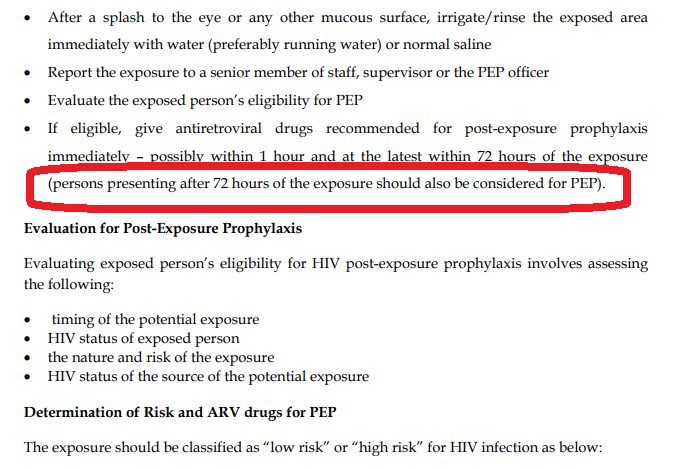 Tức là, cứ có nguy cơ phơi nhiễm HIV không an toàn đều cần dùng PEP 72h.