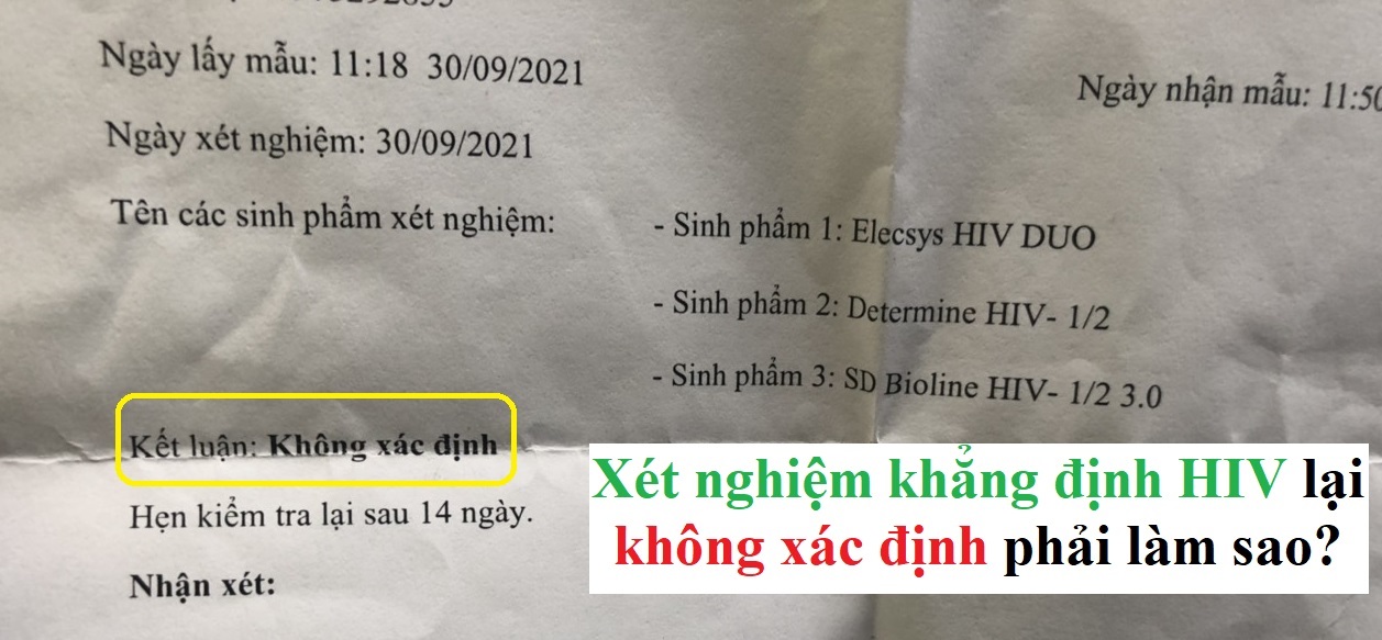 - Nếu kết quả tiếp tục là không xác định, cần làm thêm 1 lần nữa. Nếu kết quả xét nghiệm lần thứ 3 vẫn là không xác định, kết luận người này không bị nhiễm HIV.